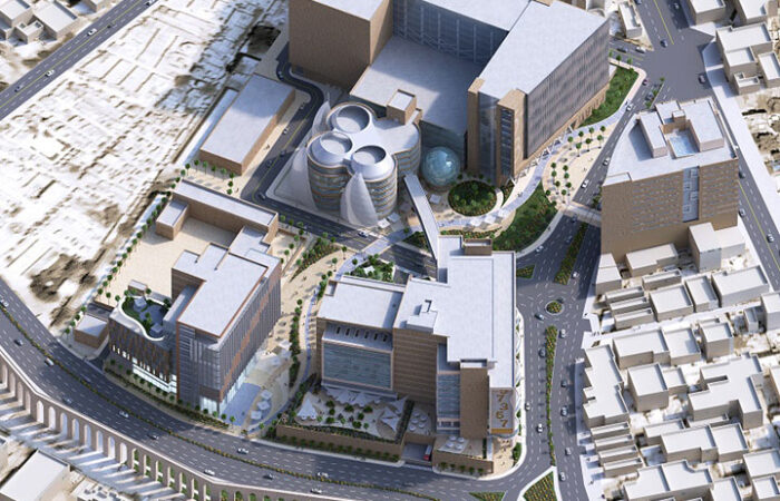 Stage 1 of the project consists of the redevelopment and expansion of the existing Core Medical Center (Children Cancer Hospital) into a new state of the art health sciences campus in Cairo, Egypt. The expansion to the existing Core Medical Center consists of two new 12 story (above grade) towers to the East and West of the existing Core Medical Center. These two towers will be connected above the existing Core Medical Center at levels 5 through the roof. Four 66000mm long transfer trusses will support the structure above the existing Core Medical Center. In addition to the expansion to the Core Medical Center, the Health Sciences Campus will be the home to an additional three towers. Both the Smart Building and the new Outpatient Center will be comprised of 13 stories above grade, while the new Research